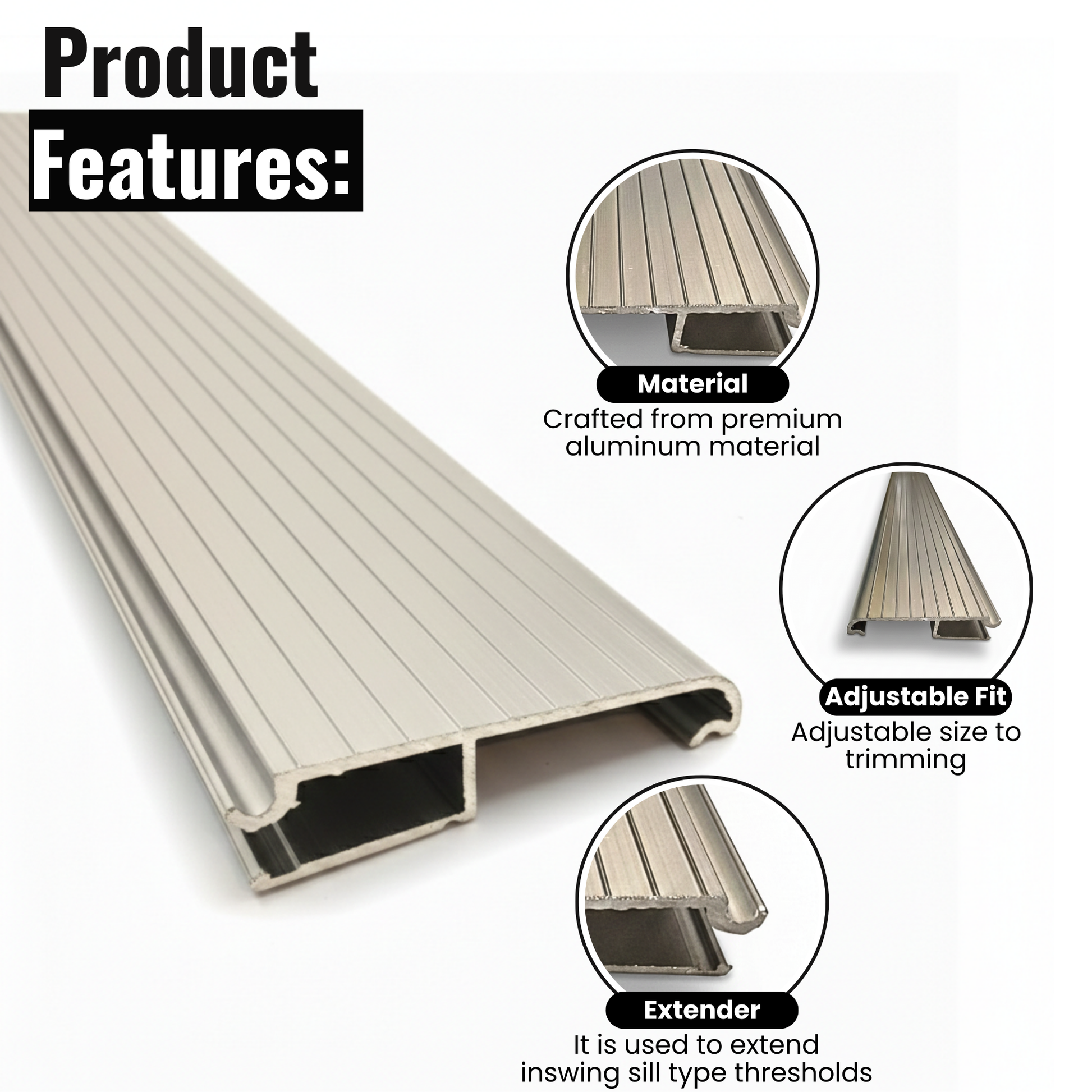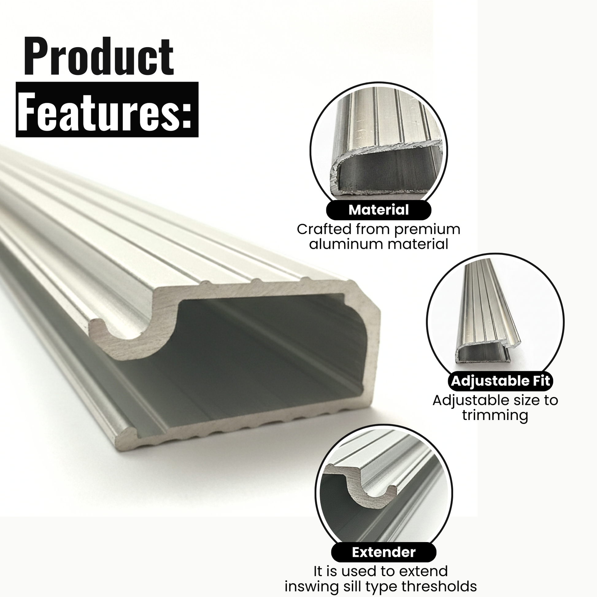 Upgrade or extend your existing door threshold with this heavy-duty aluminum threshold extension designed for durability, fit, and everyday use. This product is a practical solution for customers who need additional threshold coverage, replacement options, or a combo setup for repair and installation projects.