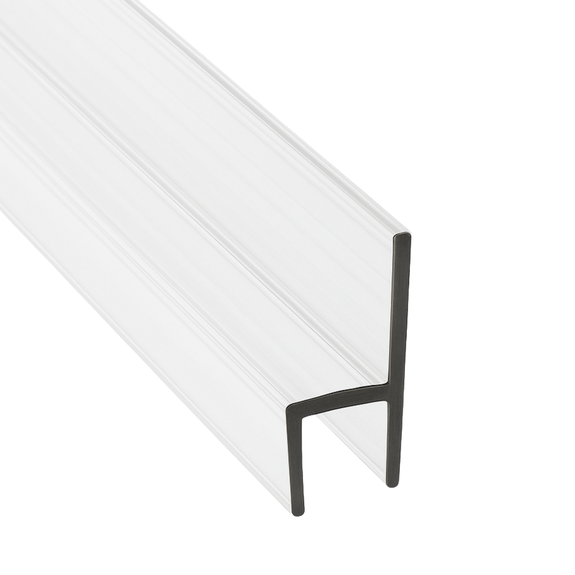 CBW Frameless Shower Door Side Seal Strip H-Type 180 Degree 72'' Length, Clear (1/2'' Glass)