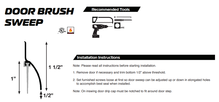 - VARIATIONS: Available in sizes 36-inch and 48-inch options, with a door drip edge that shields the door and floor from rainwater infiltration, prolonging the life of the door sweep.