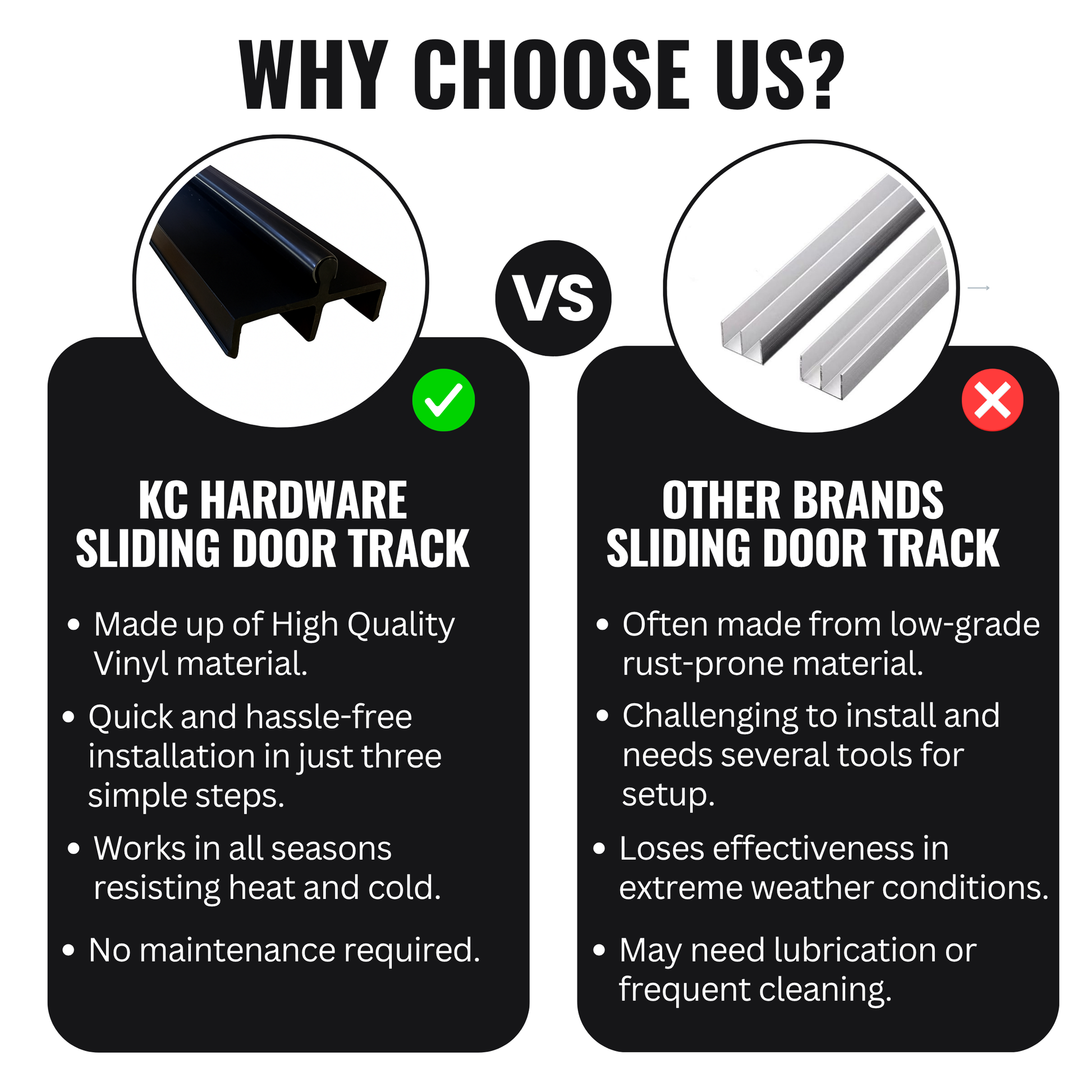KC Hardware Premium Black Vinyl Sliding Door Track with Stainless Steel Cover - Ideal for Glass and Screen Doors, Home Improvement and Patio.