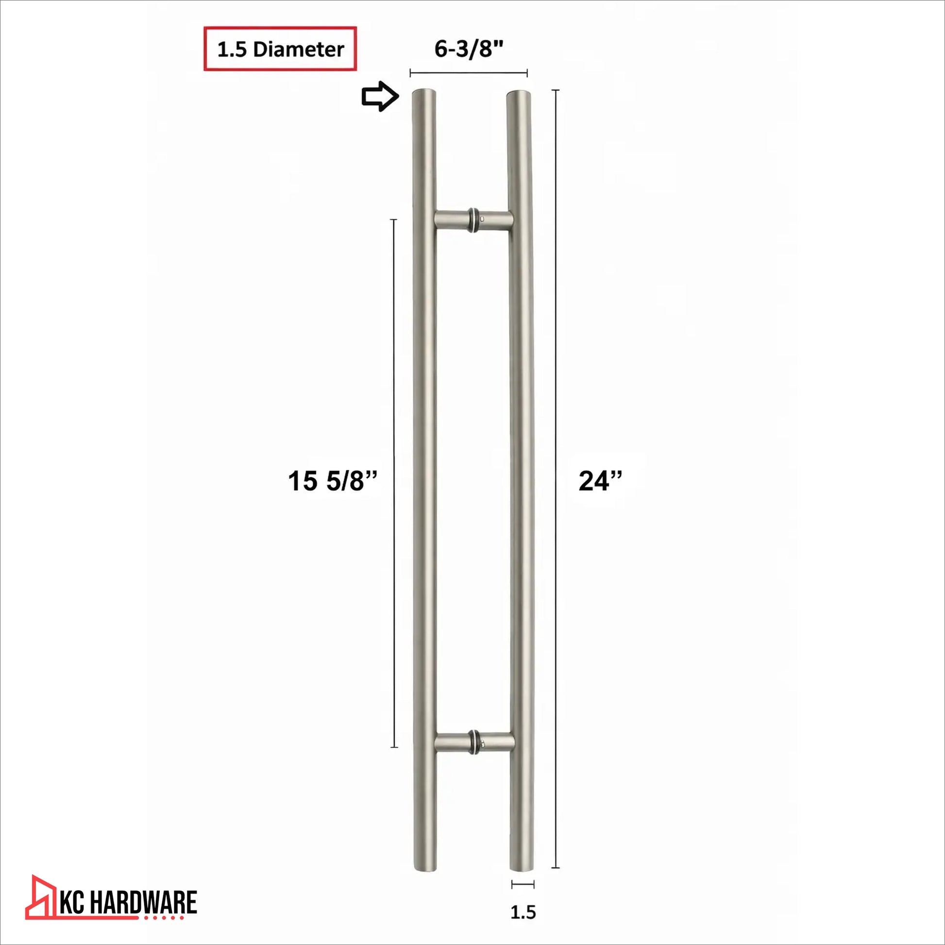 Stainless Steel Double-Sided Pull Door Handle Chrome Nickel 24", 36", 48"